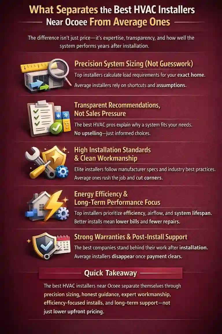 Our experience-driven opinion is simple. Homeowners near Ocoee should judge installers by process, not promises. The best HVAC installers: